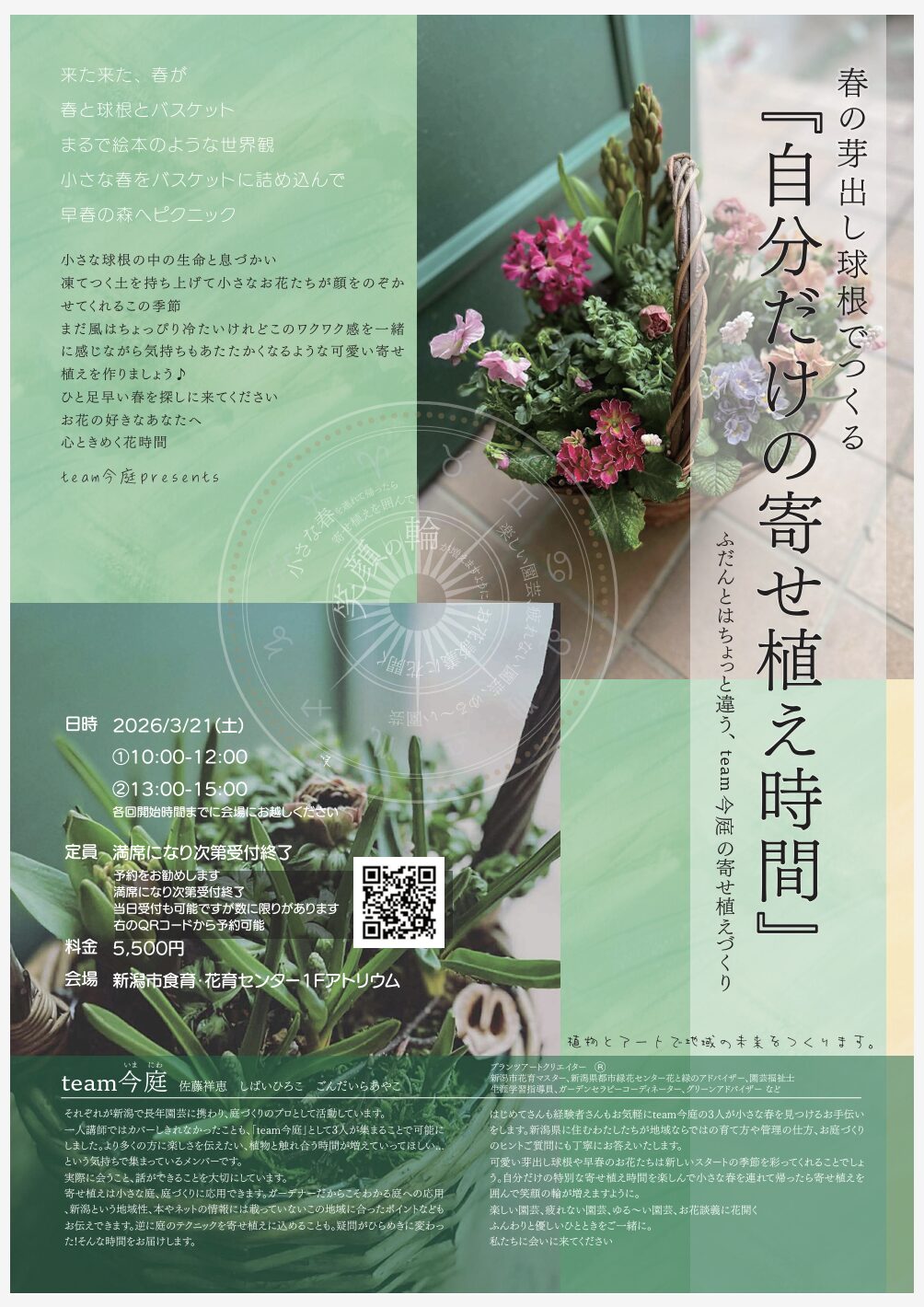 team今庭の3人が小さな春を見つけるお手伝いをします。