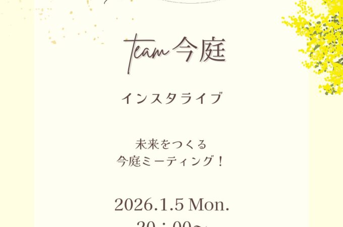 ■お知らせ team今庭 インスタライブ 未来をつくる 今庭ミーティング! 新しい年のはじまりに ちょっと未来のお話を。 今年はど...
